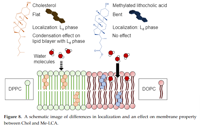 生体膜分子の立体構造の違いによる膜影響についての論文です。リンク先(PubMed)はこちら。